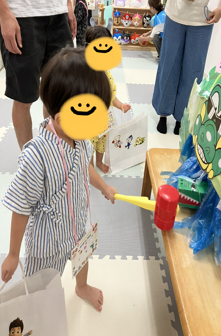 去年は怖くてできなかった子も今年は勇敢にワニさんと戦っていました🎵